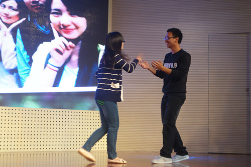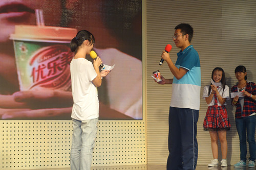 晚会的第一个游戏是模仿广告词,参加游戏的成员争先恐后的上台,模仿优乐美奶茶的广告。她们羞涩的神情和认真的语气引发台下阵阵欢笑,也更加期待之后精彩的节目。