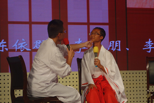 随后上台的情景剧《匆匆那年》是全场晚会的最大亮点之一。草业团委学生会倾情演绎了青春的故事,每个场景,每个故事都有似你我。青春是相似的,我们相遇相知相爱相离,青春是别样的,我们有所感不屑回忆怀念,而那年,我们已匆匆走过。学生会的精彩宣传视频更是让在场观众大呼感动,一张张年轻的面孔,因为对草业大家庭的爱而相聚而努力。纵然时光易逝,但青春万岁!所有的爱与回忆都将伴你我走过漫漫人生,愈品愈醇,痴心依旧。