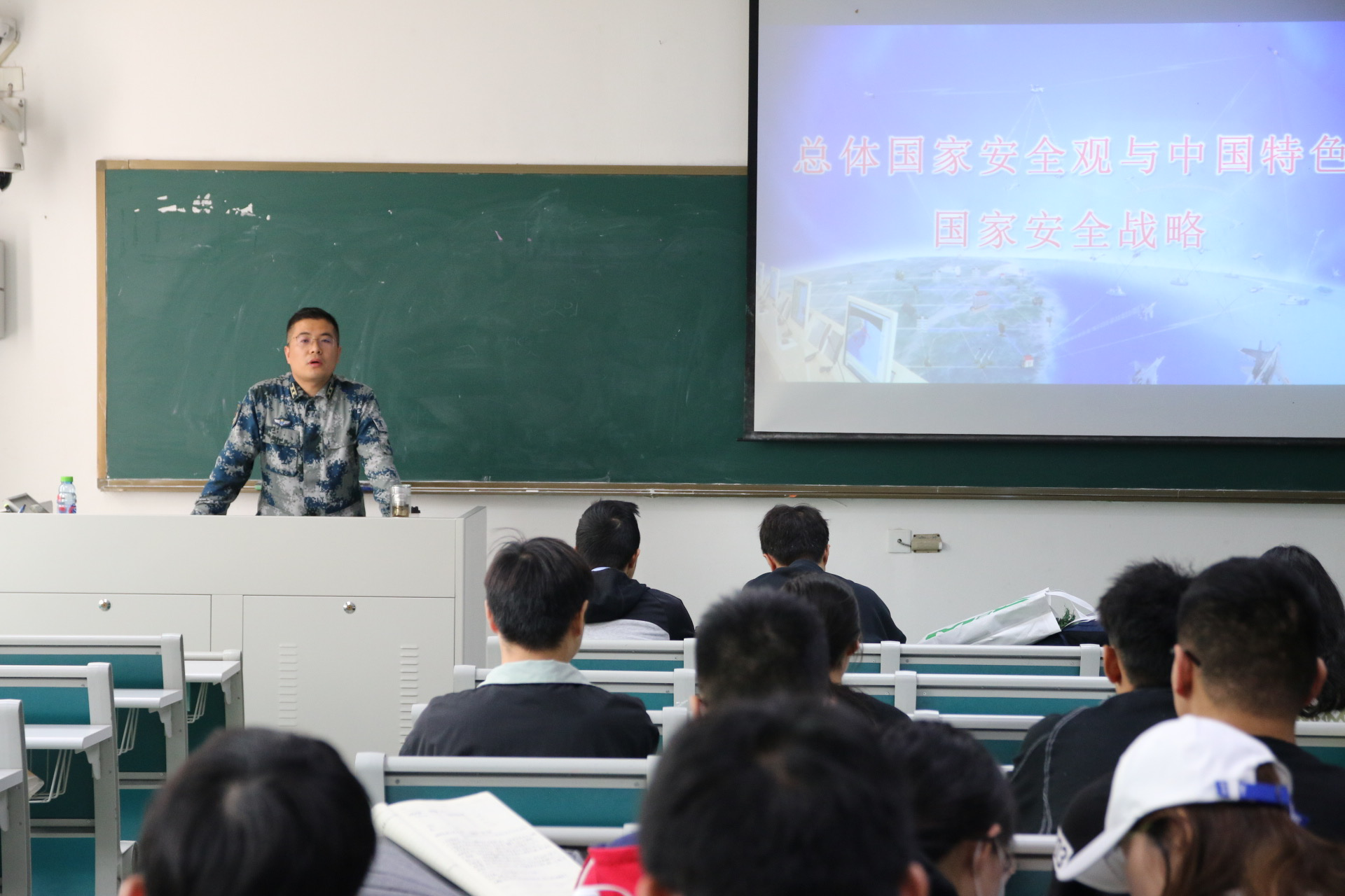 李中校的报告主题是“总体国家安全观与中国特色国家安全战略”。