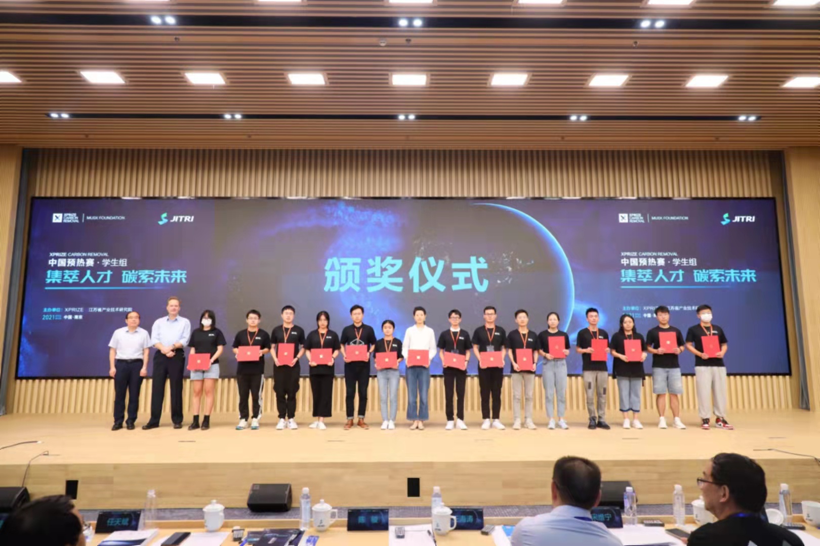 据悉,本次比赛是由XPRIZE基金会发起组织,由Elon Musk与Musk Foundation资助,XPRIZE基金会发起了 XPRIZE Carbon Removal大赛,奖金总额1亿美元,是有史以来奖金额度最高、最具探索精神的竞赛。该基金会成立于1995年,是世界顶级教育性非盈利奖金机构,不定期举办有明确、客观目标的大型激励式竞赛。2021年,为促进碳中和目标的实现,2021年江苏产研院与XPRIZE Carbon Removal成为合作伙伴,协助XPRIZE Carbon Removal大赛在中国的宣传推广,包括举办XPRIZE Carbon Removal中国预热赛,共同探寻具有可持续性、经济性、创新性的碳去除技术,加快碳去除技术的产业化进程。中国科学院院士、南京大学原校长陈骏,同济大学教授、集萃有机功能材料研究所所长任天斌,江苏产研院院长刘庆、党委书记胡义东等出席本次决赛活动。本次中国预热赛(学生组),征集到了来自全国40余所高校的60多件参赛作品,聚焦在大气、海洋、陆地、岩层、碳评估五大领域,经过初选,25个优质项目入围最终的角逐。这项全球大赛为期4年,旨在通过征集全球创新者开发的解决方案,以实现直接从大气或海洋中提取二氧化碳,并能够持久封存,最终实现负碳目标,解决目前限制人类进步的重大问题。