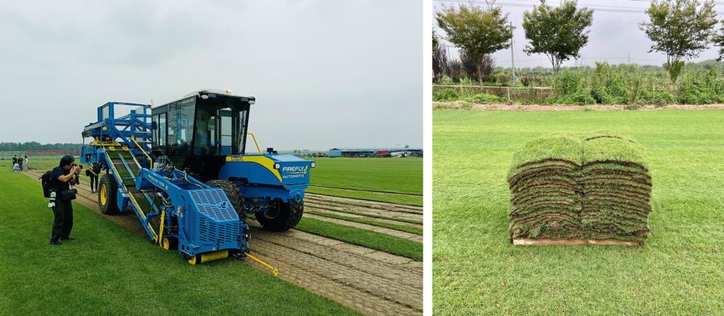 教授、南京农业大学句容草坪研究院院长杨志民介绍,南京农业大学草坪三新技术实实在在地帮助了后白草坪品种更新换代,带动了农民增收致富。日前,草坪研究院引进了一台价值300万元的自动堆垛式草皮收获机,这是目前中国最先进的草皮收获设备。草皮自动收获技术将大大提高草坪生产效率,推动后白草坪实现机械化、标准化和现代化。