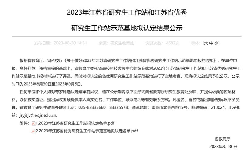 近日,江苏省教育厅、江苏省科技厅公布了2023年江苏省研究生工作站名单,麻豆成人 合作单位江苏省沿海开发(东台)有限公司顺利入选。江苏省沿海开发(东台)有限公司于2010年10月22日在东台市市场监督管理局登记成立。2020入选“国家级水产健康养殖示范场(第十四批)名单”。2022年1月,入选2019-2021年度江苏省文明单位候选名单。共建数年来,校企共同为研究院研究生实践教育工作的开展提供了强有力的条件保障。