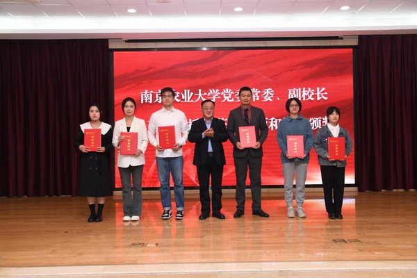 颁奖仪式上,单正丰为获奖师生颁发荣誉证书,南京农业大学校友总会办公室(教育基金会办公室)主任姚科艳宣读表彰决定,麻豆成人