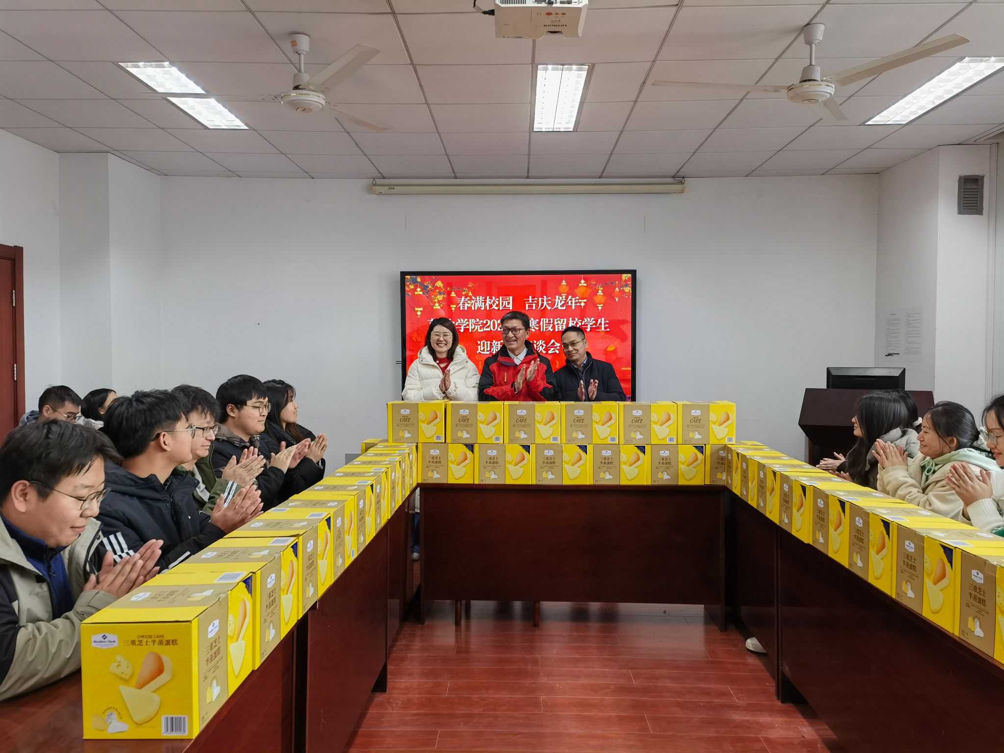 于理科南楼F304会议室举办“春满校园,吉庆龙年”2024年寒假留校学生迎新春座谈会活动。院党委副书记、副院长高务龙,副院长陈煜,院团委书记、辅导员武昕宇及留校学生共计30余人参加了此次活动。