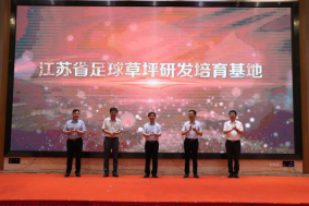 院长张炜,江苏省足球运动协会副主席王小湾,句容后白镇镇长徐哲迅代表三方签约。随后,曹卫星、陈发棣、刘彤、武鸣、束克之共同为江苏省足球草坪研究培育基地揭牌。