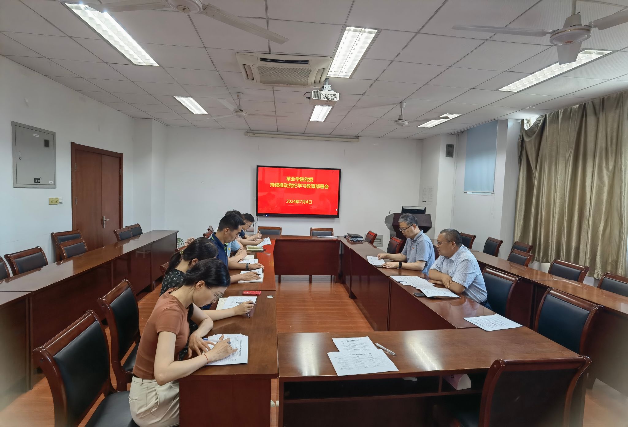 召开持续推动党纪学习教育走深走实工作动员部署会。院党委书记李俊龙、副书记韩立新,各党支部书记、党务秘书等参加会议。动员部署会由李俊龙主持。