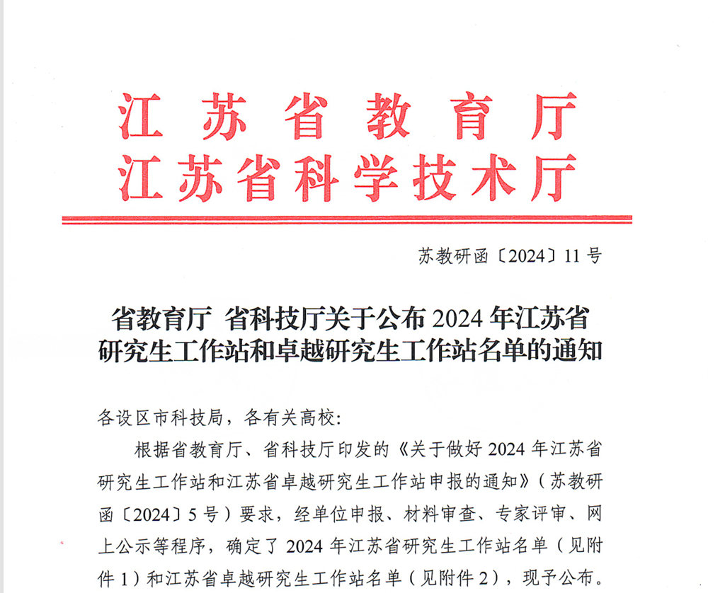 近日,江苏省教育厅、江苏省科技厅公布了2024年江苏省研究生工作站名单,麻豆成人