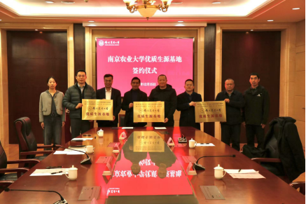 期间,黄绍华、石木舟、韩立新与范占国、牛相燕、苏明刚分别代表学校和兵团五师高中、邯郸五中、赤水一中签订了南京农业大学优质生源基地共建协议。