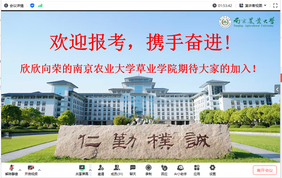 的师资队伍、研究方向、科研实力、实验室条件、校内外实习基地等情况。他鼓励同学们积极报考我校研究生,共同携手推动草业发展,服务乡村振兴和农业强国建设。