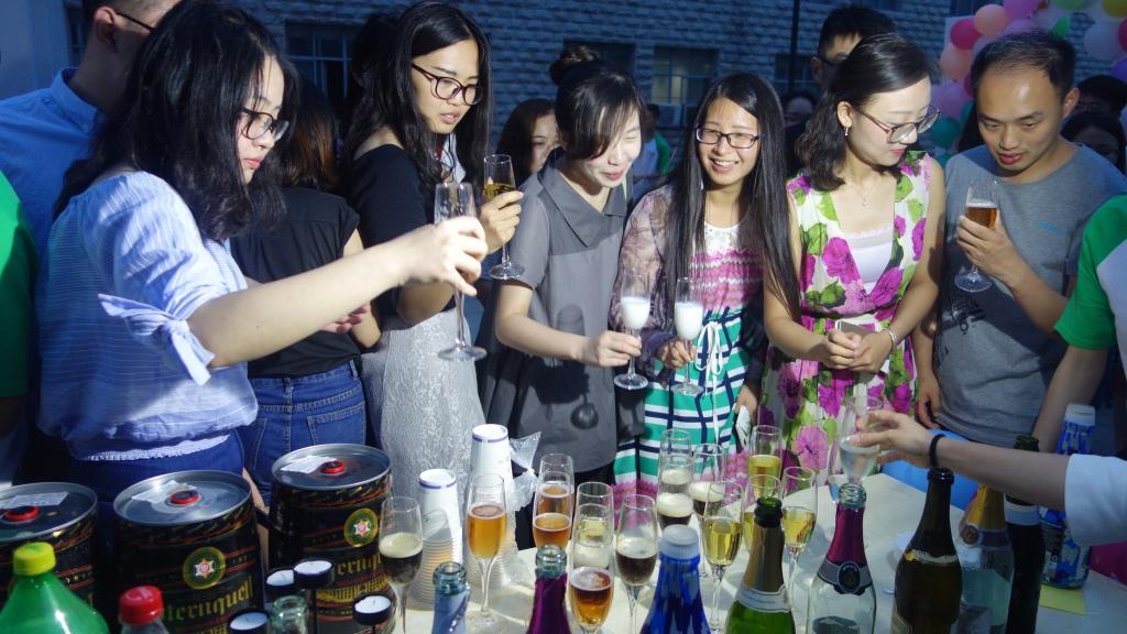 接下来由毕业生表演节目,节目结束之后整场晚会达到了高潮,李书记为大家切蛋糕,同学们举起香槟,冷餐会就餐环节正式开始。在一片欢声笑语中,他们回忆过去,畅想将来。