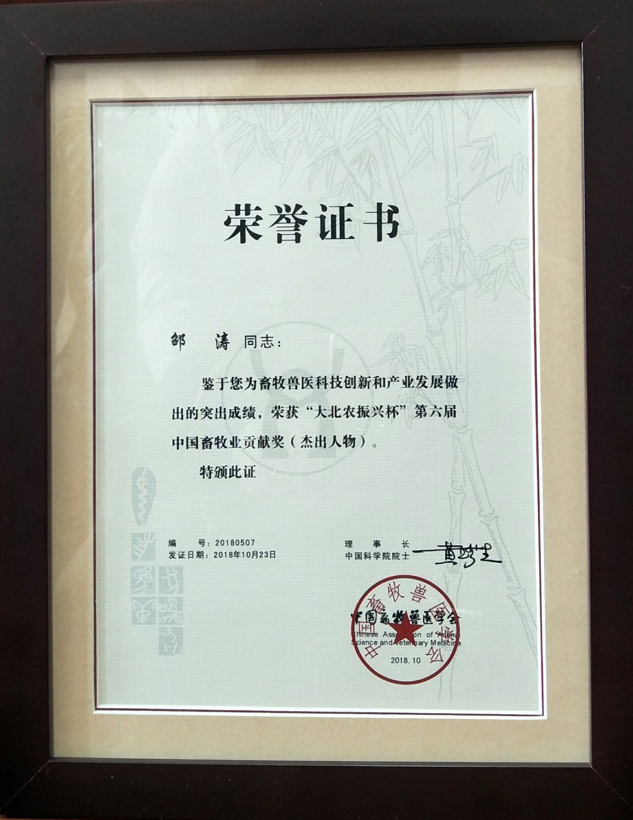 麻豆成人 邵涛教授荣获第六届中国畜牧业贡献奖