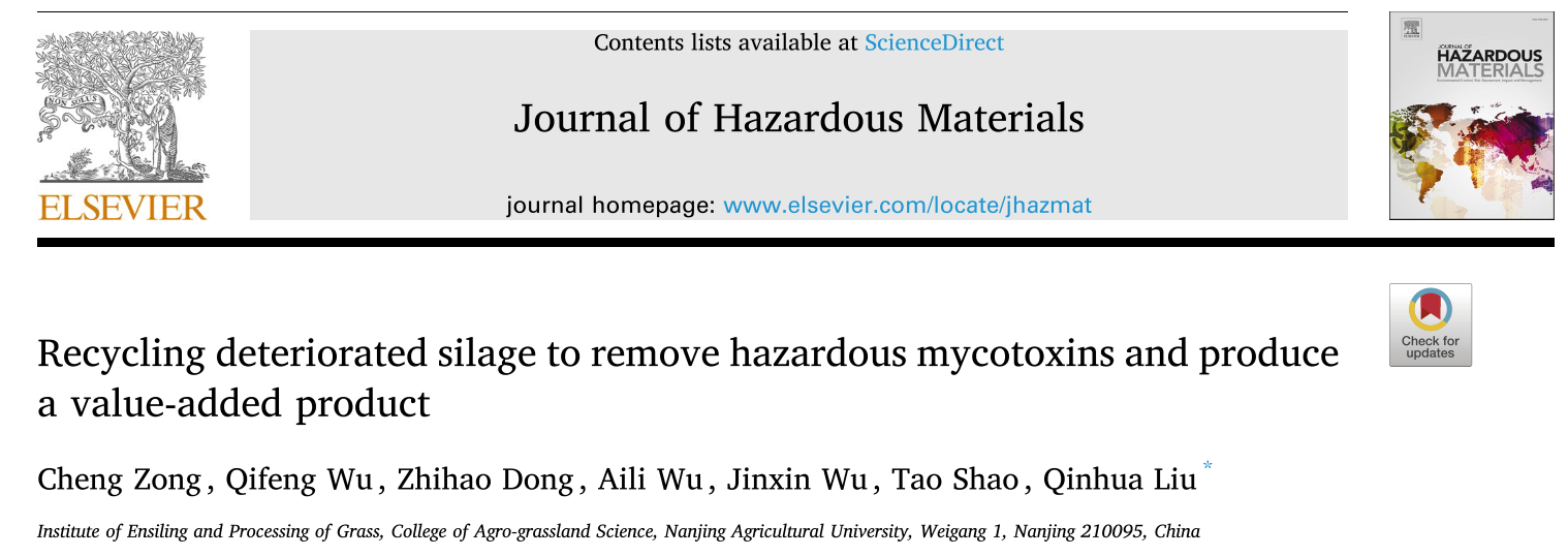 近期,麻豆成人 邵涛团队分别在Journal of Hazardous Materials5年影响因子12.984)和 Journal of the Science of Food and Agriculture5年影响因子4.096)在线发表了题为“Recycling deteriorated silage to remove hazardous mycotoxins and produce a value-added product”和“Exploiting the anaerobic fermentation of alfalfa as a renewable source of squalene”的研究性论文。