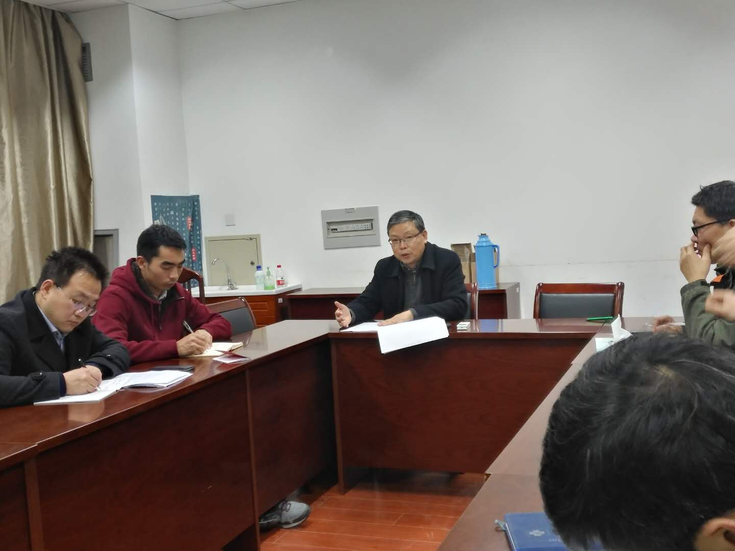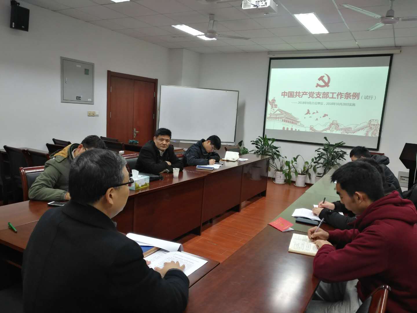 首先,李书记就中央近日印发的《中国共产党支部工作条例(试行)》(以下简称《条例》)背景向中心组成员进行了详细的解读。他强调《条例》的制定和实施,对于加强基层党组织建设,推动全面从严治党向基层延伸具有十分重要的意义,各二级党总支书记一定要抓好基层党支部建设。高务龙副书记制作了《条例》学习培训的PPT,与大家深入浅出的分享了《条例》的主要内容。随后李书记还就今后中心组的学习方式提出建议,要求中心组成员充分分享个人的心得体会。最后中心组成员就此次学习发表了各个的看法。教工支部邵涛书记说道《条例》的颁布,表明了国家对基层党组织的重视,作为基层党组织的成员,我们一定要按照《条例》的要求严格执行。研究生第一支部张敬书记说《条例》对基层党组织及支部书记有了明确的规范要求,为我们今后的工作理清了思路。研究生第二支部书记原现军书记同样说道《条例》的实施明确了支部活动应如何开展,同时对一些基本概念也有了清晰的认识,中心组其他成员也都发表了各自的心得体会。
