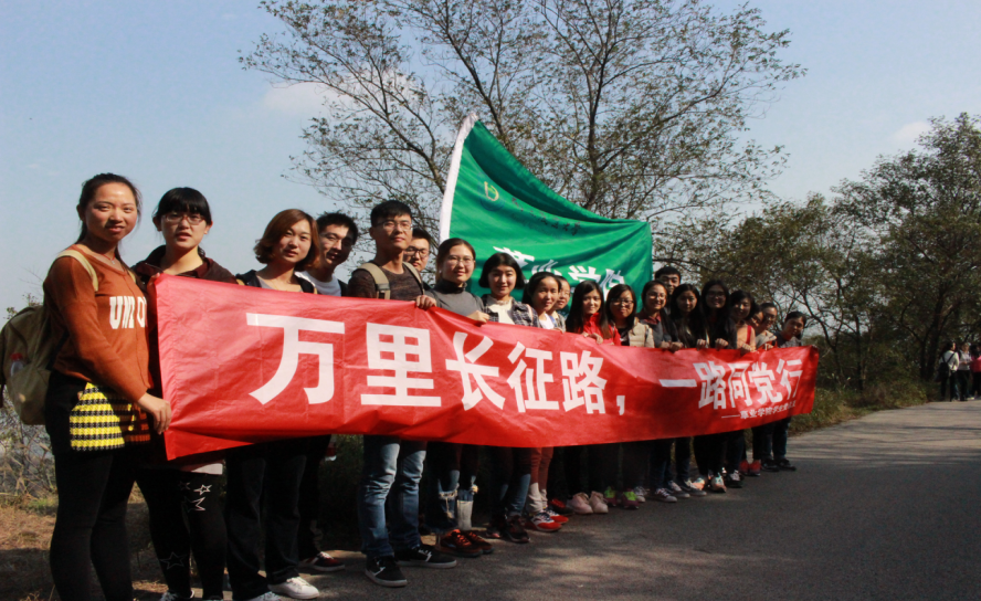 为铭记长征历史,弘扬长征精神,增强党员干部身体素质,锻炼意志,增进团队意识和进取精神,麻豆成人 特开展重走长征路纪念活动,重温红军长征艰苦卓绝的光荣历史,旨在激励学生树立坚定的理想信念,自觉践行社会主义核心价值观。11月13日早上8:00,麻豆成人 研究生党支部成员以及入党积极分子共20人在北门集合,经3小时徒步达栖霞寺,进行“万里长征路,一路同党行”纪念长征胜利80周年主题活动。