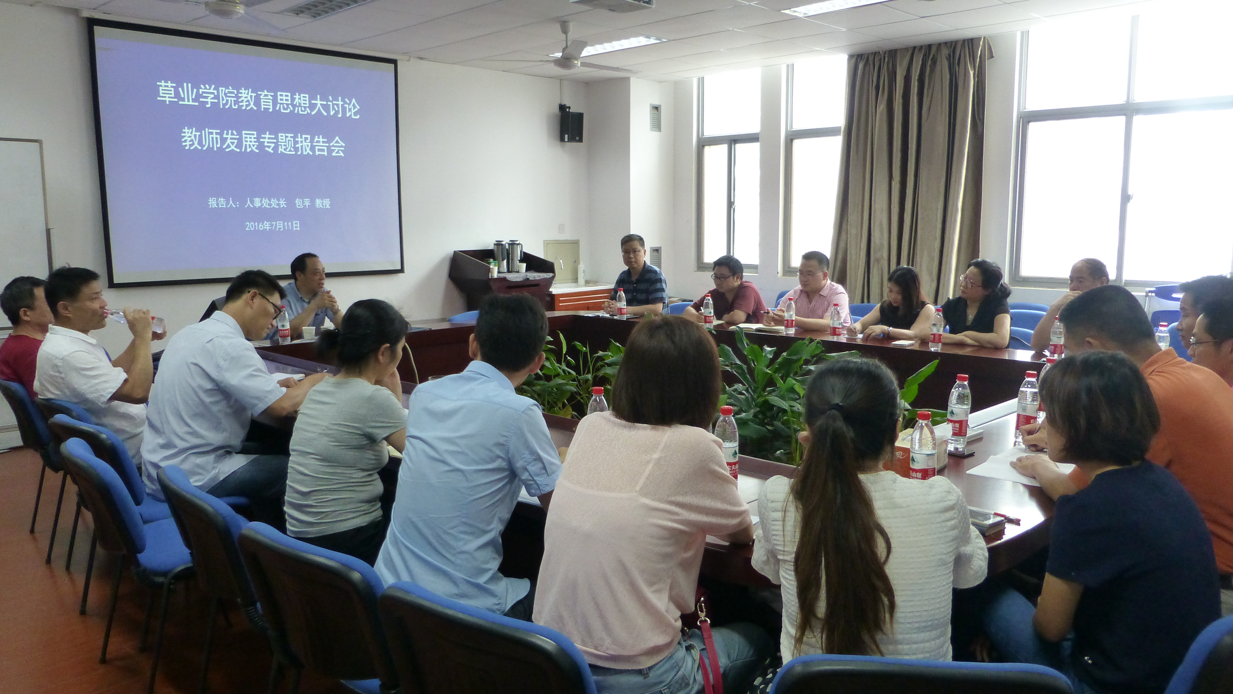2016年7月11日下午,麻豆成人 在理科南楼院会议室举办教育思想大讨论教师发展专题报告会。报告由人事处处长(人才工作领导小组办公室主任)包平教授主讲,麻豆成人 党总支书记李俊龙主持,麻豆成人 全体教职工参加了报告会。 包平报告分三部分:一是回顾了2014年以来国家事业单位人事管理改革的相关政策,重点解读了《事业单位人事管理条例》以及相关文件精神;二是介绍了学校和麻豆成人 教师队伍的基本情况和发展现状,分析了师资队伍的优势和存在的问题;三是结合学校即将出台的人事制度改革办法,从岗位设置、聘用制度、考核与晋升、薪酬制度设计等方面进行了详细的解读。