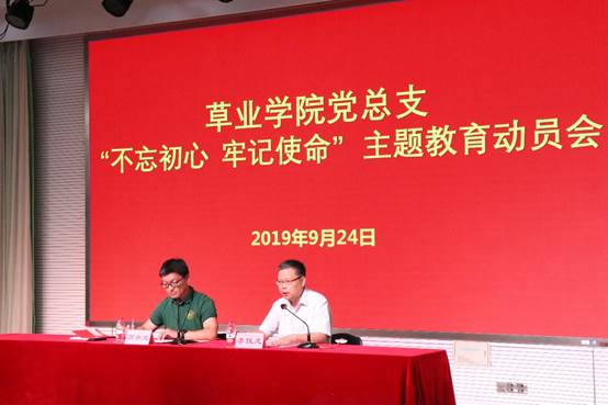 李俊龙作动员讲话。他对中共中央《关于在全党开展“不忘初心、牢记使命”主题教育的意见》精神,以及中共教育部党组印发《关于教育部直属高校开展“不忘初心、牢记使命”主题教育的指导意见》和《南京农业大学关于开展“不忘初心、牢记使命”主题教育的实施方案》要求进行了详细解读,并对全院开展“不忘初心、牢记使命”主题教育工作进行动员部署,就这次主题教育提出了三点意见。一是提高政治站位,深刻认识开展主题教育的重大意义。李俊龙书记指出,开展主题教育是强化创新理论武装的重要举措,是不断深化党内教育的重要实践,是落实管党治党责任的重要内容;全体党员要提高政治站位,切实把思想和行动统一到习近平总书记重要讲话上来,统一到中央、教育部党组以及学校党委的决策部署上来,以高度的政治自觉、思想自觉和行动自觉开展好这次主题教育。二是坚持善作善成,把高标准高质量贯穿主题教育全过程。要深入学习贯彻习近平新时代中国特色社会主义思想,认真领会习近平总书记给全国涉农高校回信精神,教育引导广大党员干部牢记党的宗旨,勇担职责使命,以立德树人为根本,以强农兴农为己任,致力推进乡村全面振兴,为加快建设农业特色世界一流大学不懈奋斗。三是加强组织领导,确保主题教育取得实实在在的成效。要加强组织领导,统筹推进全院主题教育开展;要注重统筹结合,坚持实事求是的思想路线;要强化督导检查,充分利用各支委联系各支部制度,对各党支部开展主题教育情况进行督促指导,确保取得应有成效;要加强宣传引导,注意总结宣传秉持理想信念,及时发现、表扬一批身边的党员先进事迹,为主题教育营造良好氛围;要防止形式主义,注重学习教育质量。
