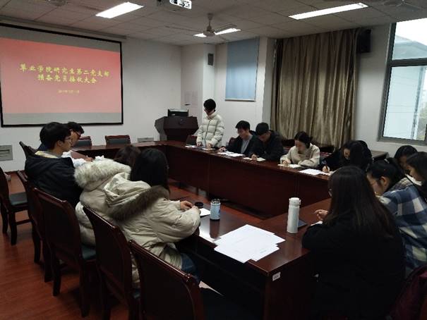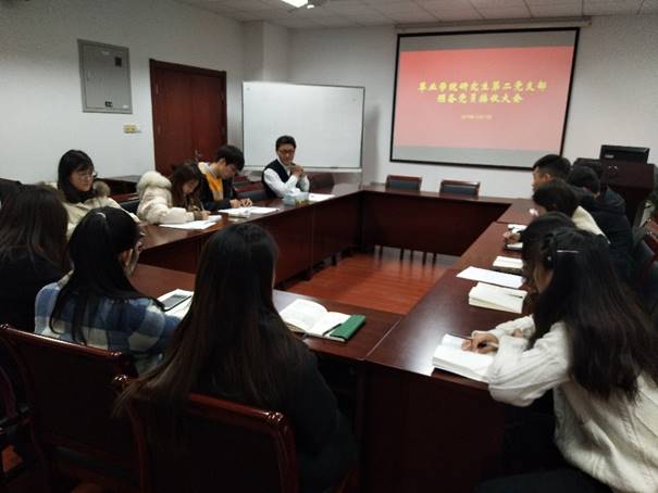 研究生第二党支部在理科南楼F304召开预备党员接收大会。出席此次会议的党员共11人,其中有表决权的党员8人。研究生第二党支部发展对象赵卓均、崔文杰参与了此次会议,党总支副书记高务龙同志参加了此次会议。会议由党支部副书记季晓敏同志主持。