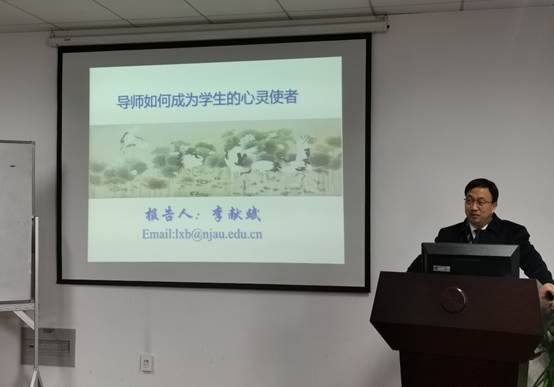 李献斌副教授以《导师如何成为学生心灵的使者》为题,以教育心理学的知识为基础,结合案例,生动展示了导师成为心灵使者的过程,转变教育观念,以学生为中心,开展启发式教学,在课题组内开展心理健康教育,运用理性情绪疗法的ABC理论,帮助学生阳光心态、管理情绪、理解生命的意义。他的讲授给了导师们新的思路与做法,赢得了在场老师的共鸣。