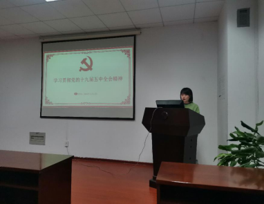 羿明璇同志带领大家重点学习了关于习近平总书记就《中共中央关于制定国民经济和社会发展第十四个五年规划和二〇三五年远景目标的建议》的重要讲话,围绕我国进入新发展阶段的重大意义、有利条件和重要特征,2035年远景目标和“十四五”我国发展的指导方针、主要目标、重点任务,构建新发展格局的战略构想和重要着力点,坚持党的全面领导、动员各方面力量为实现“十四五”规划和2035年远景目标而团结奋斗等四个方面,对党的十九届五中全会精神进行了解读。作为研究生的我们要能够全面深入学习贯彻党的十九届五中全会精神,通过持续性的学习来坚定自己理想信念。党的十九届五中全会是站在“两个一百年”奋斗目标的历史交汇点上召开的一次重要会议,为全面建设社会主义现代化国家把方向、定目标、绘蓝图、指路径,彰显了一以贯之的人民立场,体现了高远务实的发展战略,凝聚了治国理政的中国智慧,为第二个百年奋斗新征程开好局、起好步提供了根本遵循。