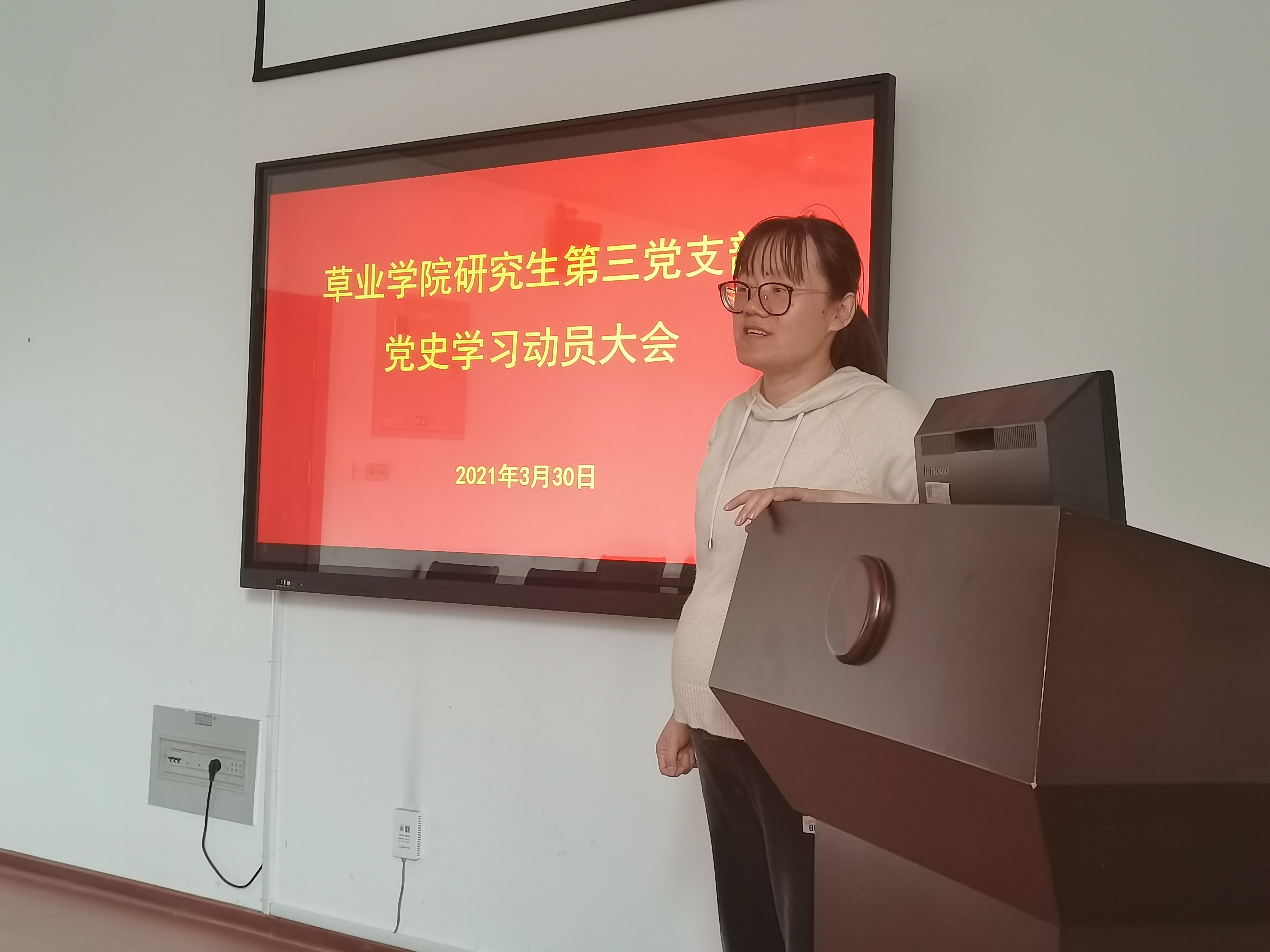 研究生第三党支部在理科南楼F304会议室召开党史学习教育动员大会,书记赵娜主持本次大会。