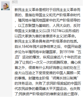 郝田首先分享了“夺取新民主主义革命胜利相关”的相关学习资料,从“重庆谈判和争取和平民主的努力”“以自卫战争粉碎国民党的军事进攻和开展第二条战线的斗争”“人民解放军转入战略进攻和土地制度的改革”“伟大的战略决战和国民党反动统治的覆灭”以及“党的七届二中全会和人民政协的召开”这几个方面系统的介绍了从抗战胜利以来到新中国成立前夕,中国共产党是如何带领全国人民逐步粉碎国民党军事进攻,赢得战场上的主导权,最终取得新民主主义革命的胜利。