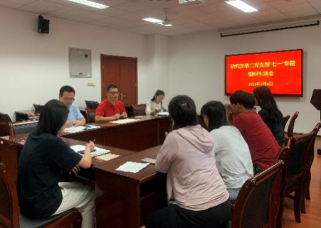 会议第二项议程,党支部书记原现军同志总结了研究生第二党支部开展的各项关于党史学习教育专题工作,并查找总结了现阶段支部所面临的问题。