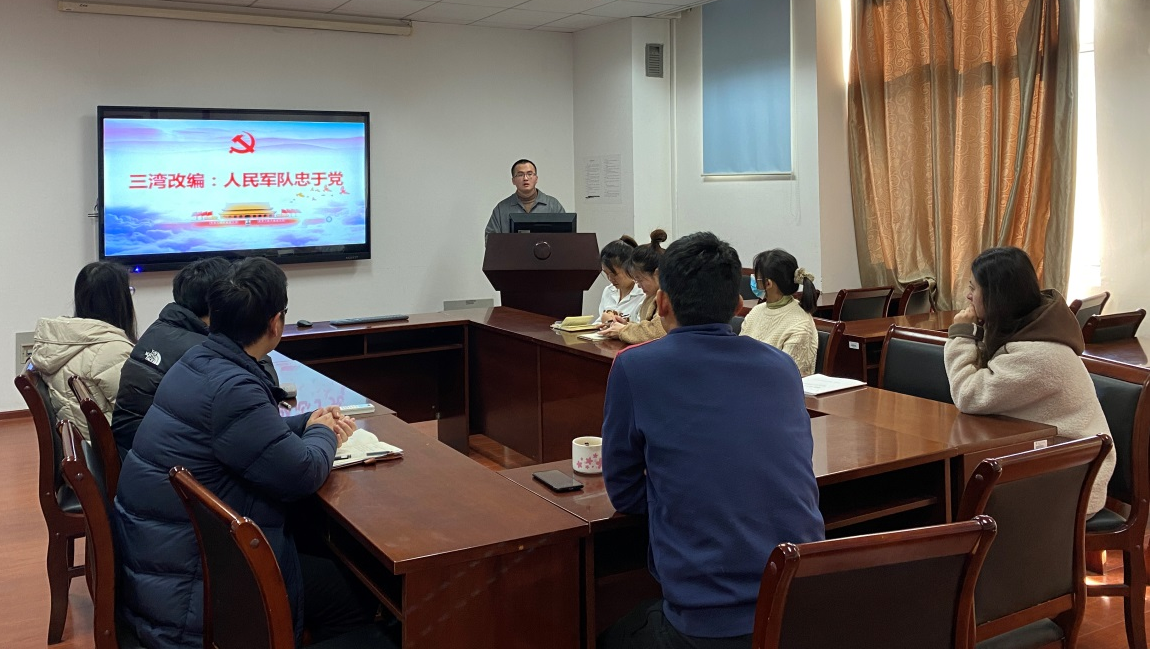 本次报告的主要内容包括:(1)阐述三湾改编的历史背景,介绍了事件的主要内容,包括“支部建在连上”、“官兵平等”和“宣布三大纪律”等;(2)讲解了三湾改编的历史意义,即确定了中国共产党对军队的绝对领导,保证了我军的无产阶级性质,从政治上、组织上奠定了新型人民军队的基础;(3)结合抗美援朝战争介绍了人民解放军所具有的时代特征。各位与会同志均发表学习心得: