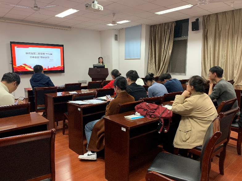 研究生第二党支部召开了关于学习贯彻党的十九届六中全会精神专题学习会议。会议采取线下形式,共7名党员参加了此次会议。党支部副书记陶亭亭同志主持并带领大家学习了党的十九届六中全会精神。