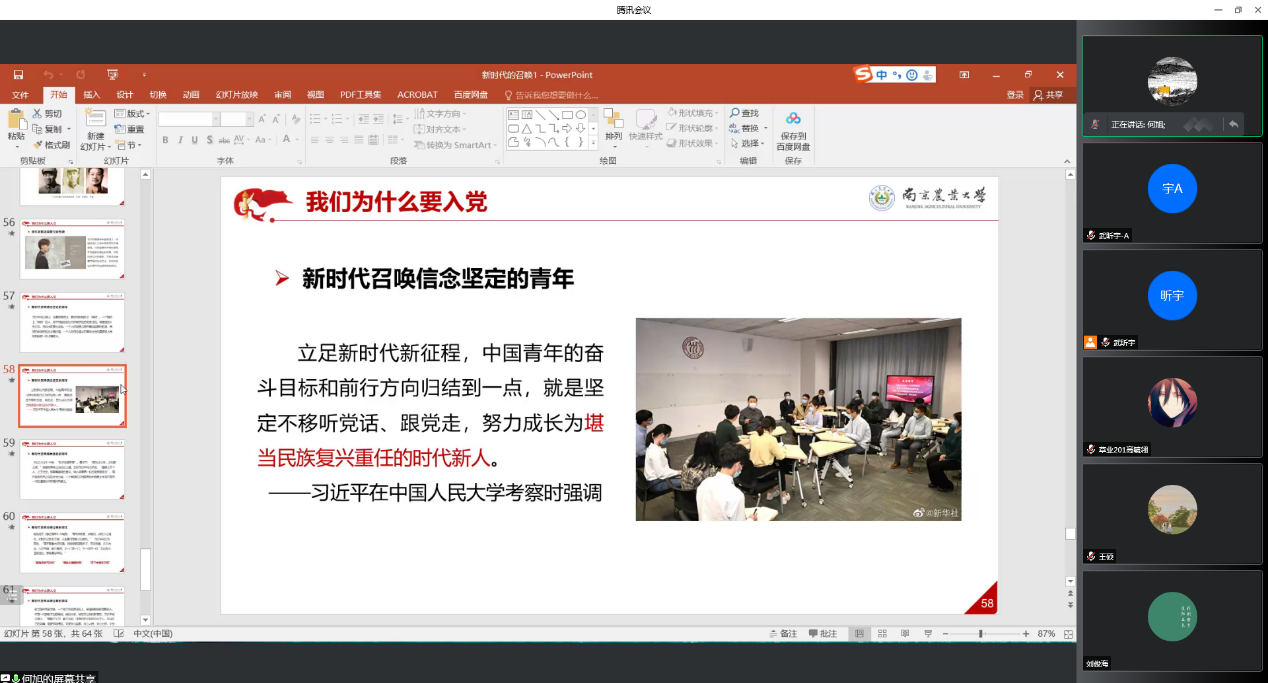 党总支举办了本学期第一次线上专题党课。本次党课邀请了南京农业大学党委组织部组织员何旭老师主讲,麻豆成人