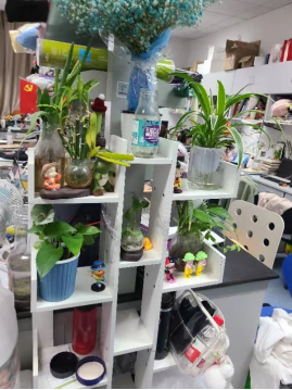 将学习室的架子收拾干净,在美化环境的同时方便在实验室工作的同学放水杯。 |