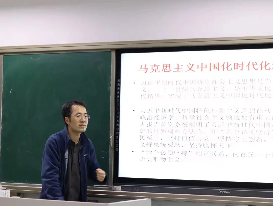 石诚老师在本次培训会议中分享的主要内容是自己对党的二十大精神学习的体会。首先,他从“中国化时代化的马克思主义为什么行”来展开阐释,中国化时代化的马克思主义是坚持马克思主义基本原理同中国具体实际相结合、同中华优秀传统文化相结合的产物,是适合中国国情的科学理论。接着石老师将党的二十大中重要内容进行仔细分析,解释了什么是习近平新时代中国特色社会主义思想的世界观和方法论及六个坚持的具体内容。