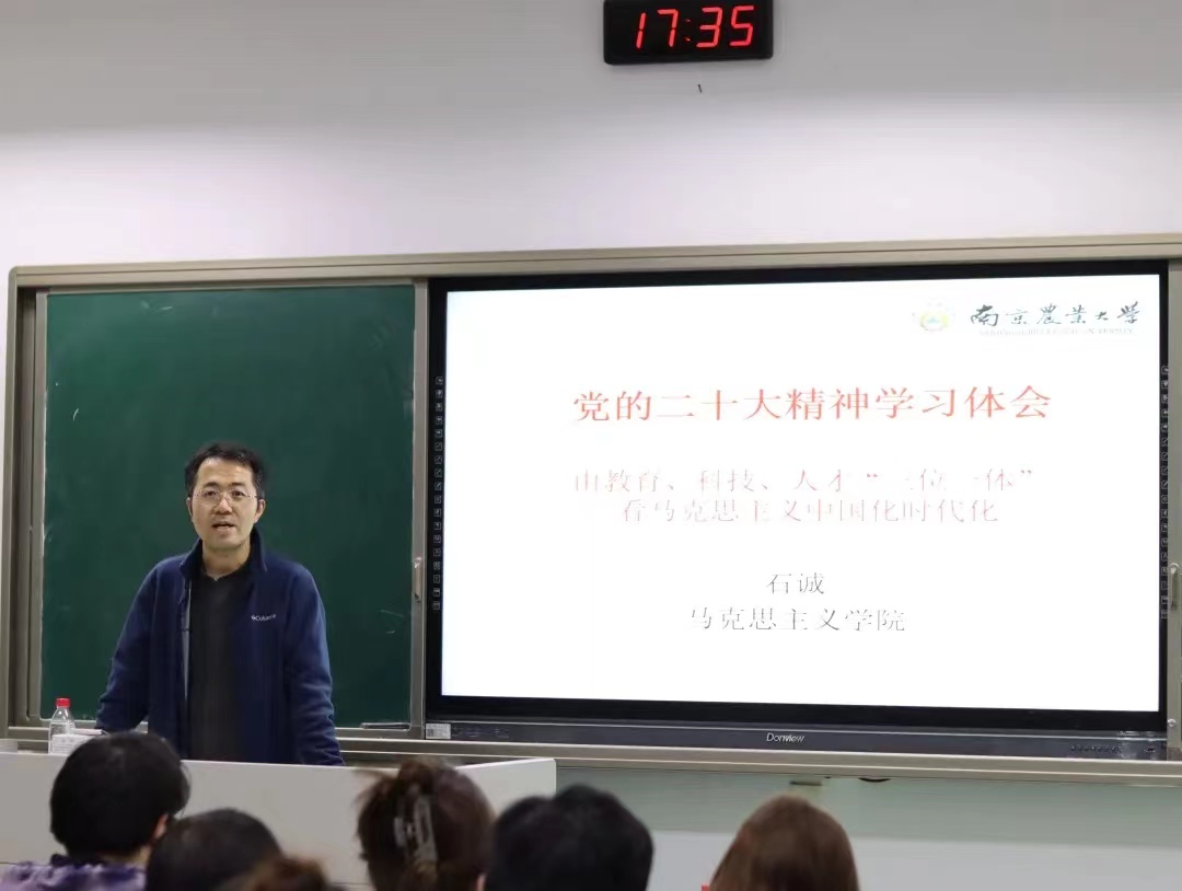 举行了党的二十大精神学习培训会议,此次培训邀请了南京农业大学马克思主义学院的石诚副教授主讲,会议由麻豆成人