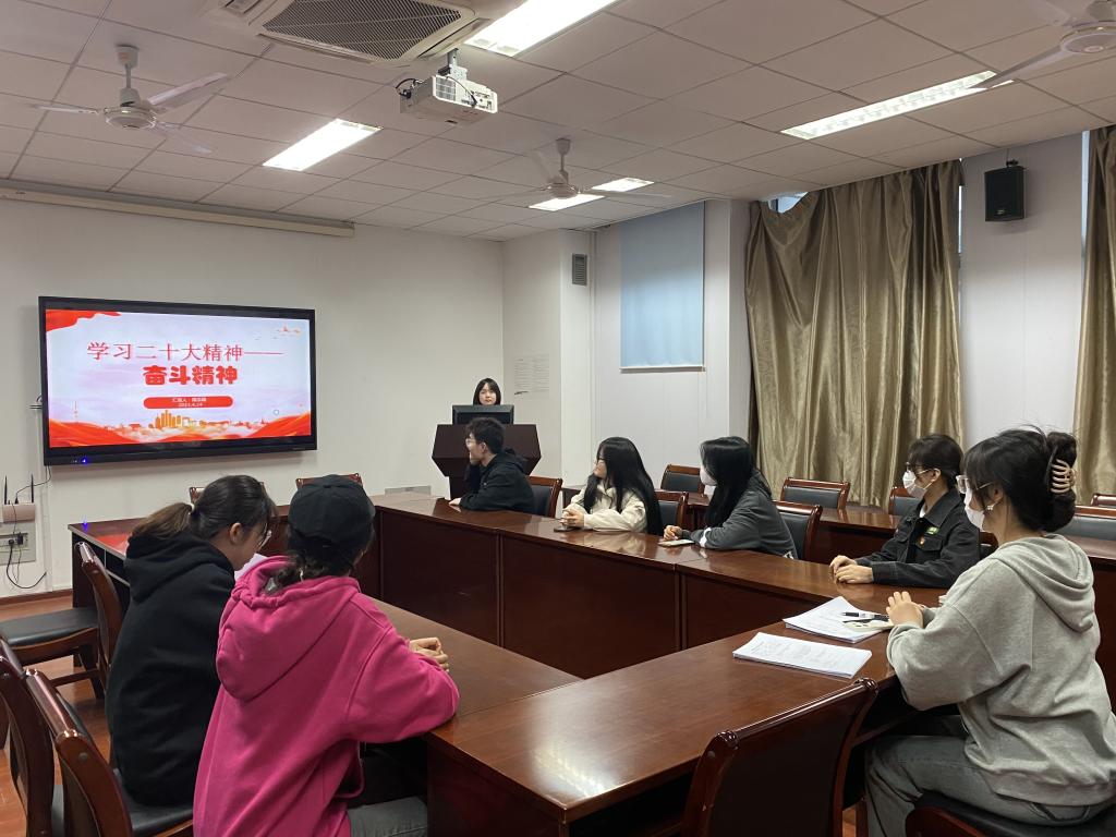 随后,陈泓锦以《党的二十大精神—奋斗精神》为主题进行了讲解。奋斗精神是自强不息、百折不挠的意志,是个人、组织、民族或国家维护权益和尊严、争取进步、实现目标的精神状态。奋斗精神是中国精神的核心内容,是中华优秀传统文化的重要组成部分,代表着我们这个民族最鲜明、最优秀的文化基因,孕育了以伟大建党精神为源头的中国共产党人精神谱系,激励着全体中华儿女凝心聚力为全面建设社会主义现代化国家、实现中华民族伟大复兴而努力奋斗。