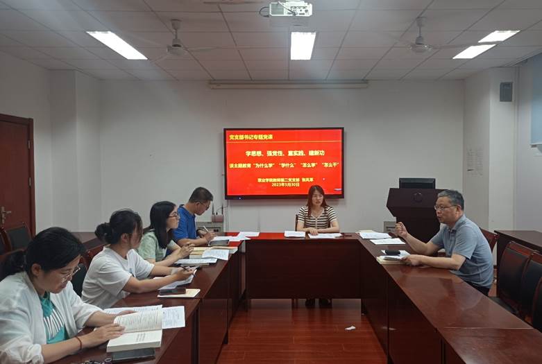 2023年5月30日,麻豆成人 教师第二党支部在理科南楼F304开展专题党课学习活动,支部书记张风革主讲题为《谈主题教育“为什么学”“学什么”“怎么学”“怎么干”》的党课。