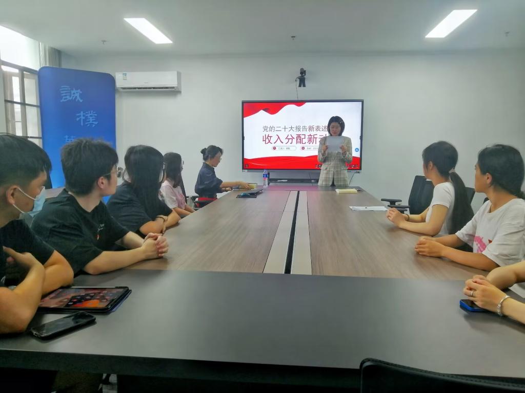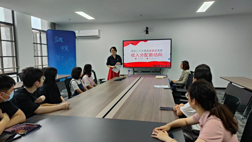 会议开始,童院长提出问题“什么是财富?”,各位党员认真思考并积极回答。接着,童院长提出本次党课的主题——规范财富积累机制,促进机会公平。首先,童院长指出:党的二十大报告首提“规范财富积累机制”,这既是完善分配制度、推进共同富裕的必然要求,也是实现高质量发展的重要内容。当前社会财富积累速度很快,但财富差距仍在扩大,经过多年探索和不断完善,收入分配领域已有相对比较完善的应对策略,如大力发展针对中低收入群体的普惠性财富管理,同时在毫不动摇地坚持保护合法私有财产的前提下,适当约束规范高收入群体过快的财富增长速度。