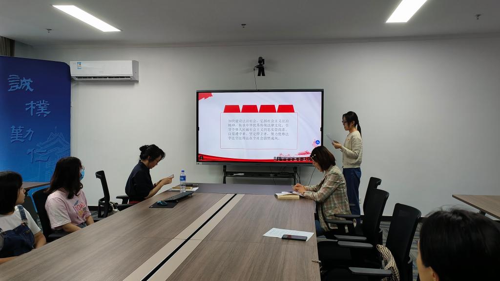 首先,由许文倩同志讲解主题为“社会主义法治精神”的微党课。社会主义法治精神的内涵包括以下四个方面:第一,以人民为中心的理念。推进全面依法治国,建设社会主义法治国家,事关人民的幸福安康 ,关系党和国家的长治久安,必须坚持为了人民、依靠人民。第二,公平正义的价值。公平正义是中国特色社会主义的内在要求,坚持维护社会公平正义为生命线,让人民群众真切地感受到社会公平正义就在身边,努力让人民群众在每一个司法案件中感受到公平正义。第三,党的全面领导。党的领导是中国特色社会主义法治之魂,推进全面依法治国,要把党的领导贯彻落实到全面依法治国的全过程和各方面。第四,中国特色社会主义法治道路。中国特色社会主义法治道路是社会主义法治建设成就和经验的集中体现,是建设社会主义法治国家的唯一正确的道路。弘扬社会主义法治精神,必须以中国特色社会主义思想为指导,必须坚持走中国特色社会主义道路,必须坚持党的领导。