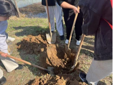 活动一开始,大家每4人为一组,分成8个小组,领取树苗和工具。在基地工作人员的指导下,大家开始了植树活动。活动中,大家纷纷发扬雷锋精神,不怕苦、不怕累,分工明确、协同高效。有的挥锄挖坑、有的扶树填土、有的浇水灌溉,每个环节都进行得有条不紊。大家用实际行动践行着新时代雷锋精神,展现出了新时代教师和青年学生的亮丽风采。