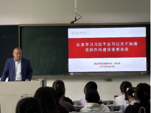 韩立新以讲授题为“认真学习习近平总书记关于加强党的作风建设重要论述“的专题党课。他介绍了深入学习贯彻中央八项规定精神学习教育的重要意义,重点围绕党风问题关系执政党的生死存亡、锲而不舍落实中央八项规定精神、推进作风建设常态化长效化和全面加强党的纪律建设四个方面作了详细的学习和解读。他指出,我们要深入学习贯彻中央八项规定精神,强化学习教育,持续加强作风建设,努力为学院高质量发展贡献力量!