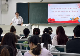李宇宣以“深入贯彻中央八项规定精神学习教育“为主题讲专题党课。她介绍了中央八项规定精神的背景与意义,指出作风建设是党建设的重要组成部分,关系党的形象、民心向背,八项规定是反”四风“的动员令,是全面从严治党的重要抓手,讲解了中央八项规定精神的内容与成效等。