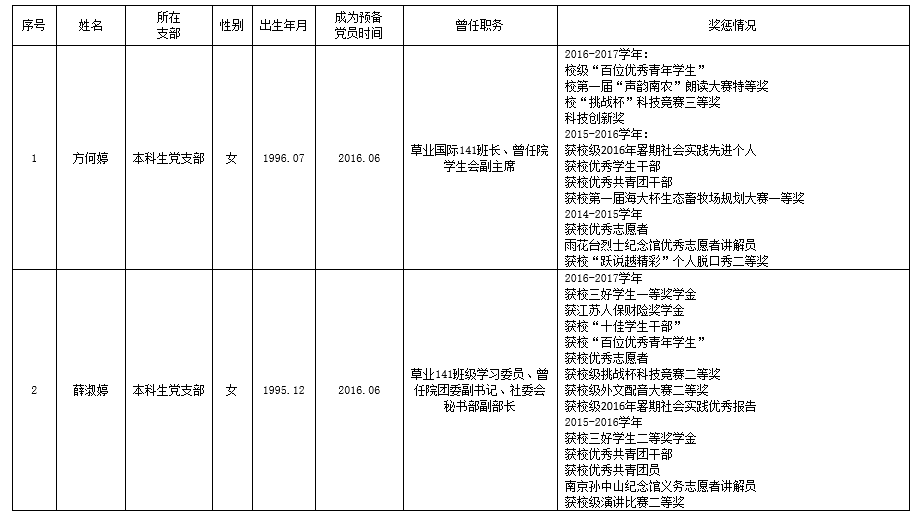根据麻豆成人 党员发展工作安排,经转正答辩,党支部讨论,结合个人成绩、综合测评以及获奖任职等综合表现,经院党委讨论审核,拟对本科生2名中共预备党员进行转正,具体名单如下: