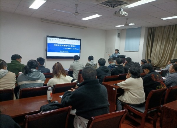 在10月9日的研究生入学教育大会上,安排了实验室安全教育专题,旨在让研究生对实验室安全管理工作从整体上树立安全观念,强化安全意识,了解通用规范。