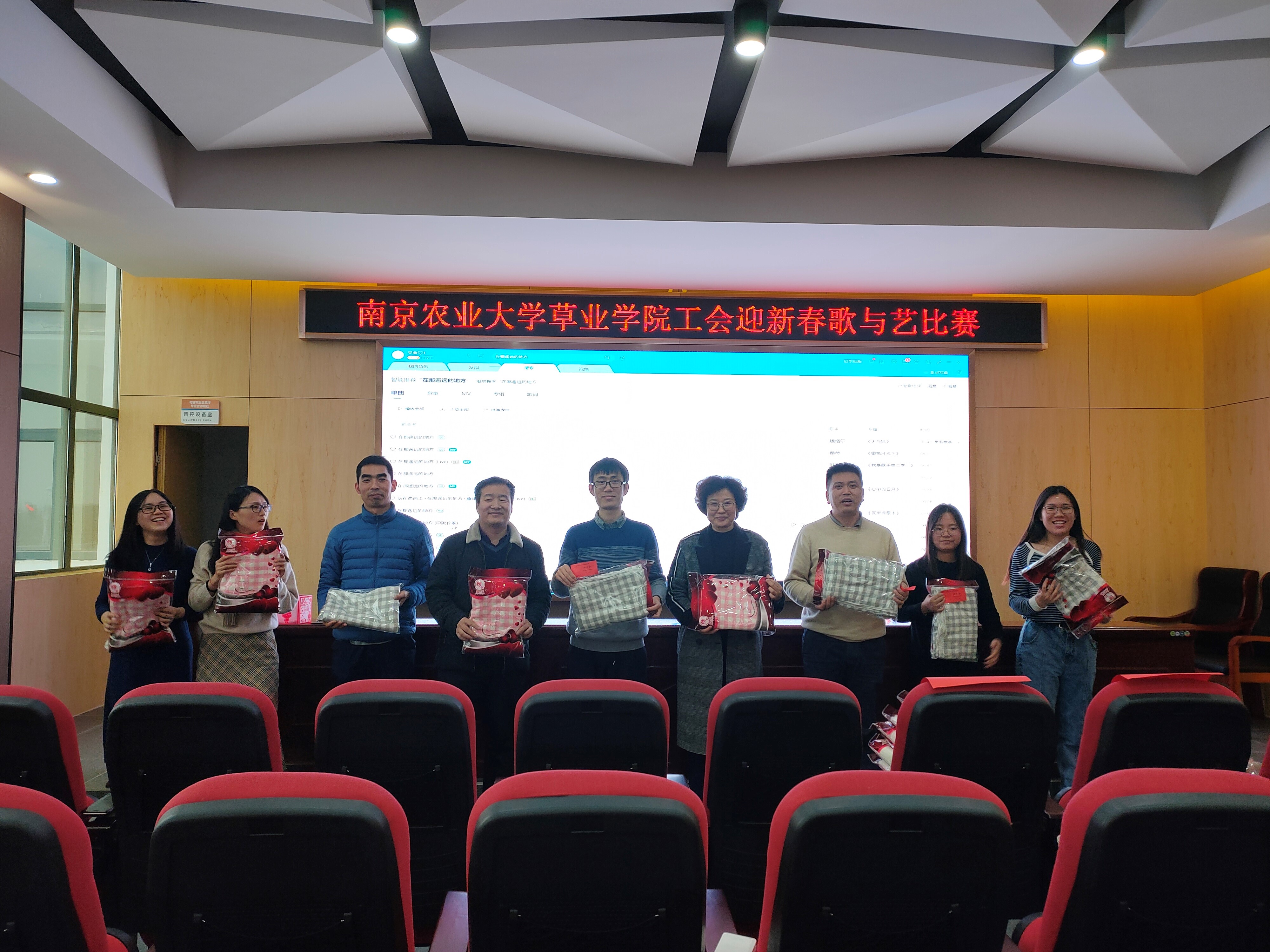 2020年1月18日下午,麻豆成人 工会在南京农业大学句容草坪研究院举办“春风吹又生”2020年迎新春歌与艺比赛活动。学院党总支书记李俊龙、院长郭振飞,副书记、副院长高务龙出席活动,学院全体教师参加了活动。