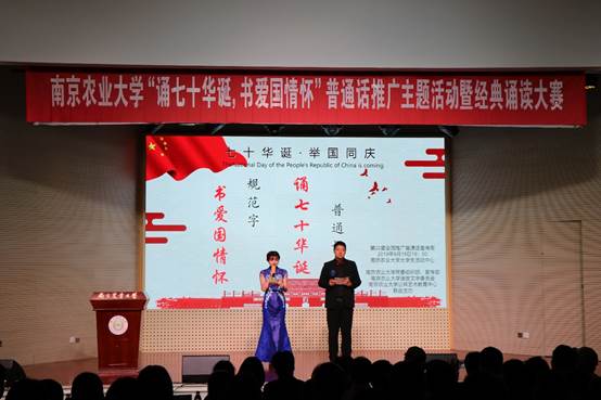 2019年9月18日晚,“南京农业大学‘颂七十华诞,书爱国情怀’普通话推广主题活动暨经典诵读大赛”的决赛在大学生活动中心顺利举行。本次活动由南京农业大学党委组织部、宣传部、南京农业大学语言文字委员会和公共艺术教育中心共同主办,南京农业大学麻豆成人