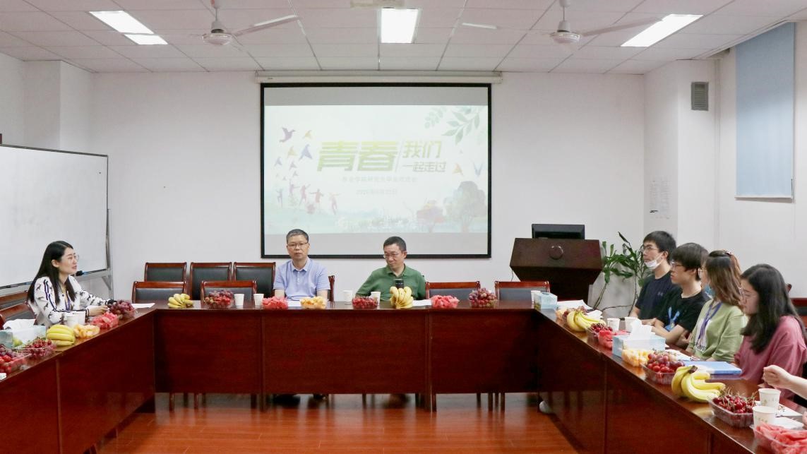 院长郭振飞在讲话中感谢这些年研究生为学院所付出的努力,表达了对研究生的重视,并鼓励毕业生们在这次会议中畅所欲言,积极为学院的发展建设提意见。随后,博士刘宇和陈继辉分享了科研心得,并对学院就学术论坛和毕业设计考核方面提出了的一些建议。其他研究生也分别发表了增加各实验室交流机会等看法,并分享各自未来发展方向,希望以后也能与学院建立长期良好的联系。接着,各老师和研究生针对学术发展等话题展开多方面的自由讨论,整个会议氛围轻松融洽。