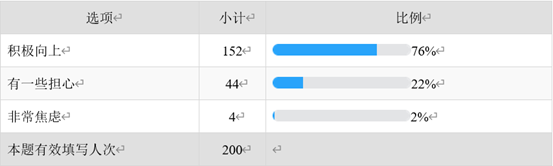 76%的人能保持积极向上的态度,22%对疫情感到有一点担心,
