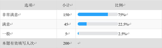 75%对于本地区社区的宣传感到非常满意,22.5%对于本地区社区的宣传感到满意,