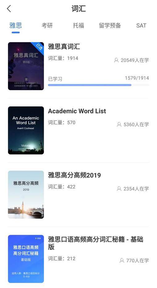 3.活动内容:使用“鲸小爱”APP,在词汇书部分选择适合自己的一本词汇书加入学习,每日需背50-100个,且背完单词后完成测试,将测试完成页面截图打卡。