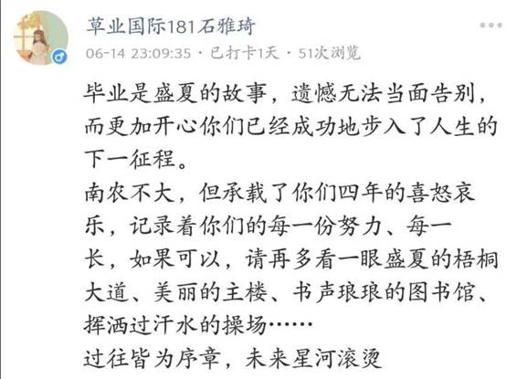 草业院的学生们用文字和照片打卡,纪念大学生活的点点滴滴。