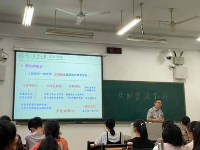 大会伊始,高书记介绍了今年新的大类招生专业——植物生产类。高书记先从植物生产类的概念入手,指出现在我们吃的东西不仅有口粮,更多的还有肉蛋奶类,而肉蛋奶无一不来自于动物,所以动物吃的饲草自然也就成为了人们关注的对象。随后与植物生产类专业之一的草业科学联系在一起,提出草业科学不仅对动物饲草有研究,还对草坪草、草原草地修复、高尔夫球场和足球场的草地等都有研究。