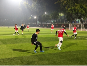 为了能够以更好的状态迎接比赛,在空余时间球员们积极进行训练,保持以最好的状态进入赛事。在刚过去的第一场比赛中,大家严格遵守赛事安排,遵守比赛规则和赛场纪律,尊重裁判,团结协作,顽强拼搏;大家有序的组织着进攻防守,场面十分激烈,最终以1:1的比分与“公管-人文”队打成平局,记1分。
